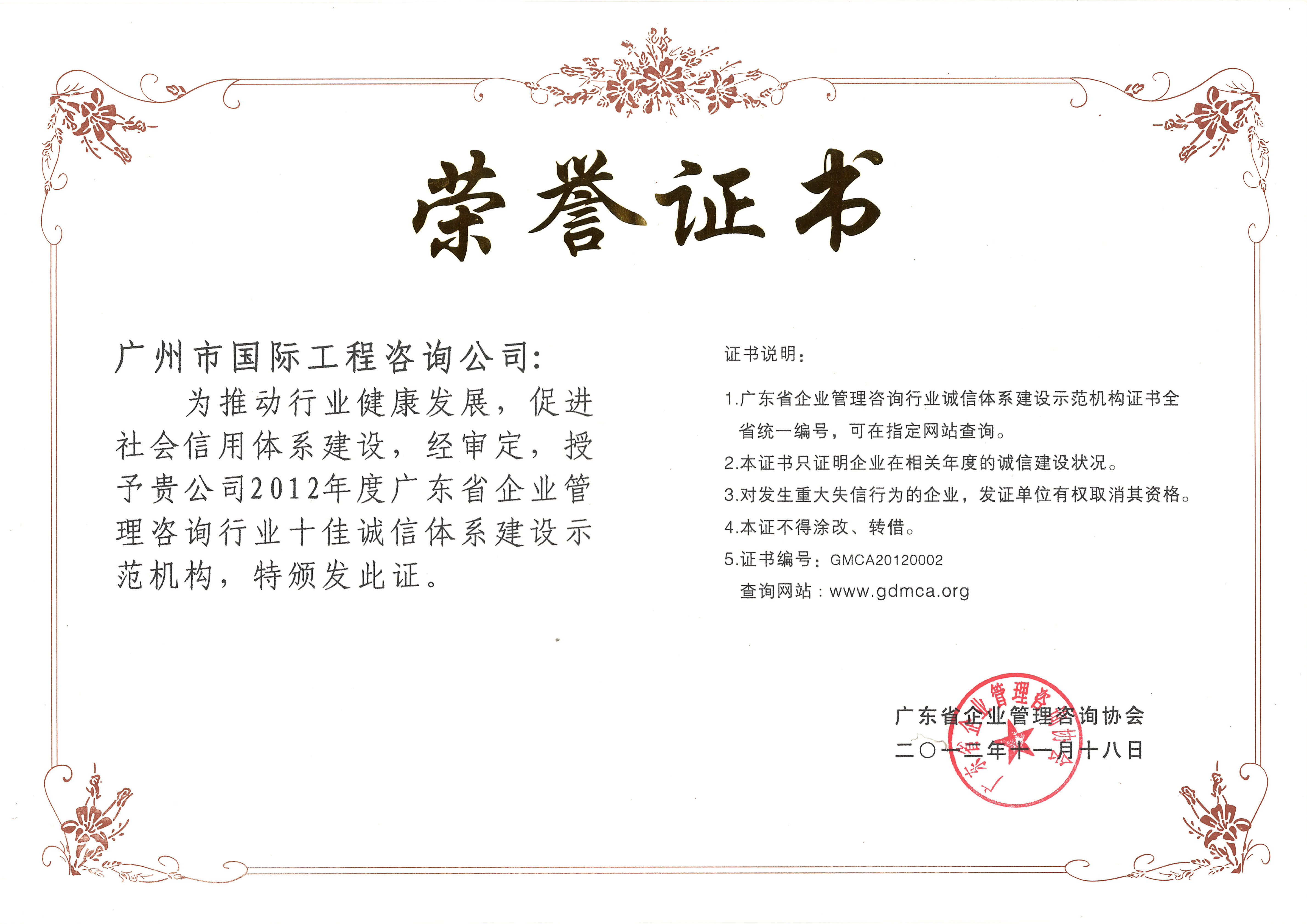 2012年度广东省企业管理咨询行业十佳诚信体系...