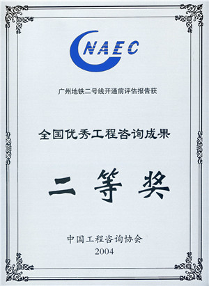 《广州地铁二号线开通前评估报告》获2004年度全...