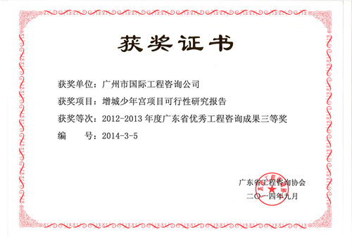 《增城少年宫项目可行性研究报告》获2012-2013...
