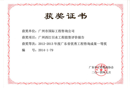 《广州西江引水工程投资评价报告》获2012-2013...