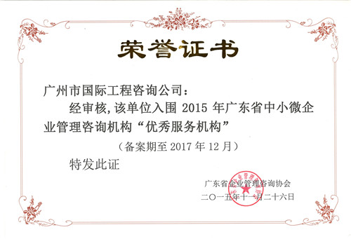 2015年广东省中小微企业管理咨询机构“优秀服...