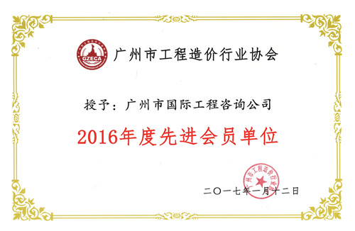 2016年度广州市造价行业协会先进会员单位