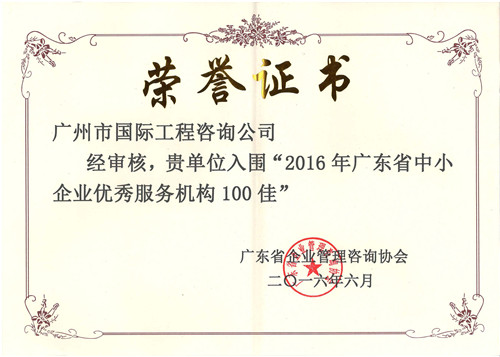 2016年广东省中小企业优秀服务机构100佳