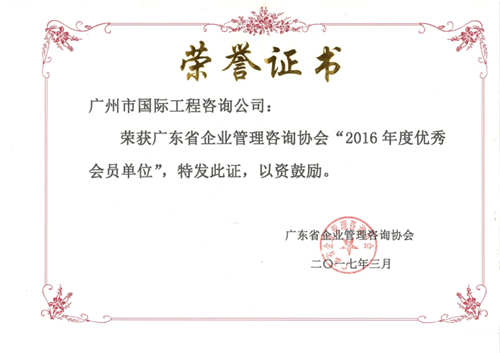 广东省企业管理咨询协会2016年度优秀会员单位