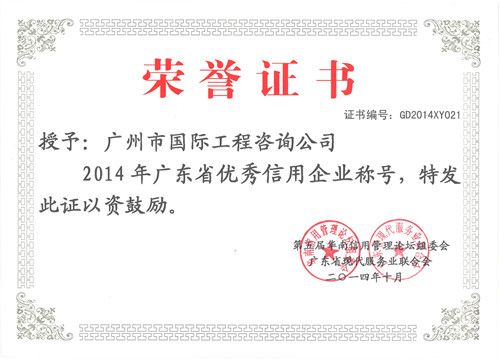 2014年广东省优秀信用企业