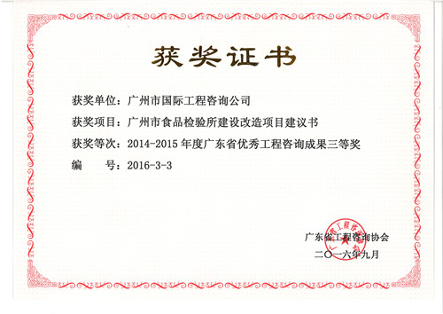 《广州市食品检验所建设改造项目建议书》获2014...
